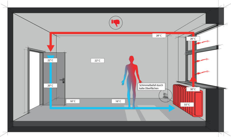 Värmen från ElemBoost når överallt, och luftflödet utjämnar också temperaturskillnaderna mellan golvet och taket, vilket ger högre verkningsgrad och lägre energiförbrukning jämfört med element utan fläkt.